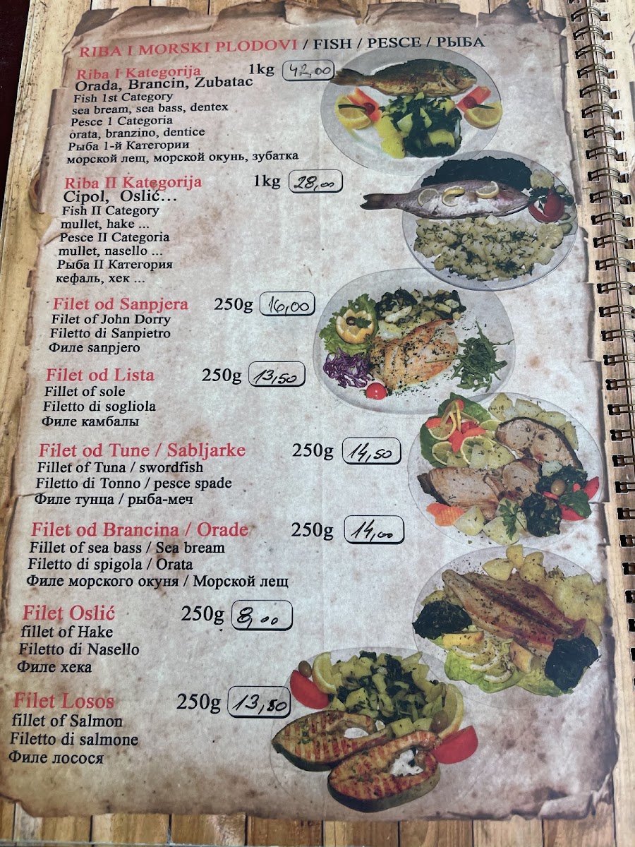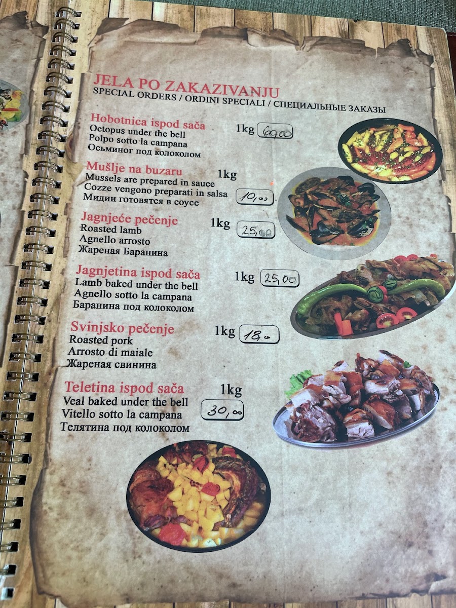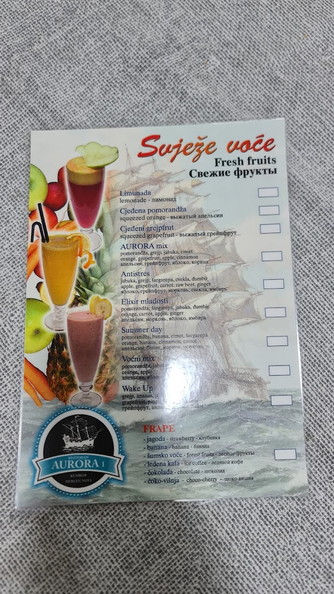 Aurora Restaurant in Kumbor, Montenegro offers a delightful blend of local flavors and Mediterranean-inspired dishes that truly captivate the senses. Among the standout items on the menu is the Prosciutto, a classic appetizer that delivers an exceptional taste of Italy with its thinly sliced cured meat, perfect for those seeking a savory start to their meal. Complementing the food, the restaurant offers Nikšićko Beer, a refreshing local brew that pairs beautifully with a variety of dishes, providing an authentic touch of Montenegrin culture. For seafood lovers, the Fruti Di Mare is a must-try. This dish showcases an impressive array of fresh seafood, cooked to perfection and bursting with flavor, offering a true taste of the Adriatic. Whether you're enjoying a light snack or a full meal, these dishes embody the essence of both local and regional cuisine, ensuring an unforgettable dining experience at Aurora Restaurant.